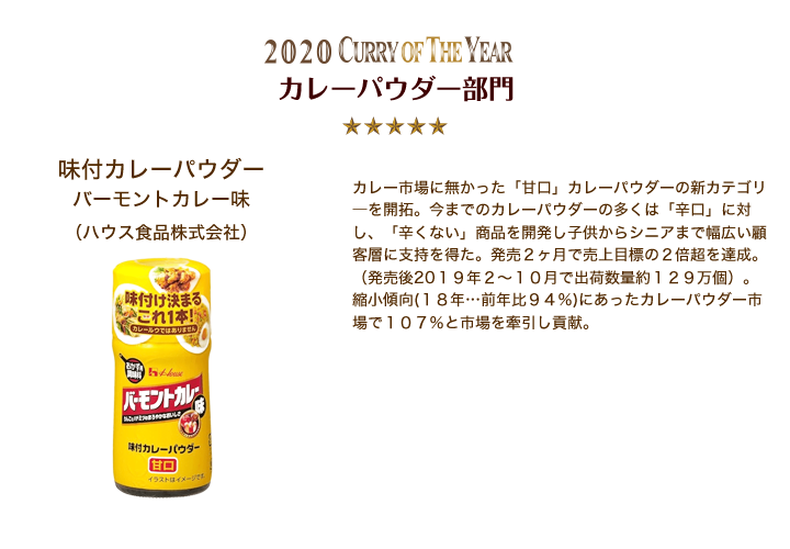 • カレーパウダー部門 味付カレーパウダー バーモントカレー味 (ハウス食品株式会社)