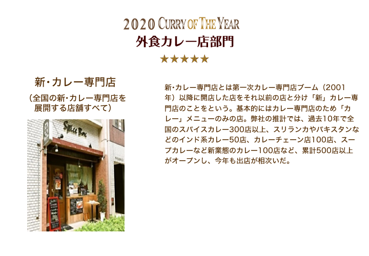 • 外食カレー店部門 新・カレー専門店 (全国の新・カレー専門店を展開する店舗すべて)