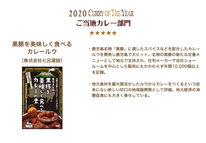 • ご当地レトルトカレー部門 黒豚を美味しく食べるカレールウ(株式会社七呂建設)